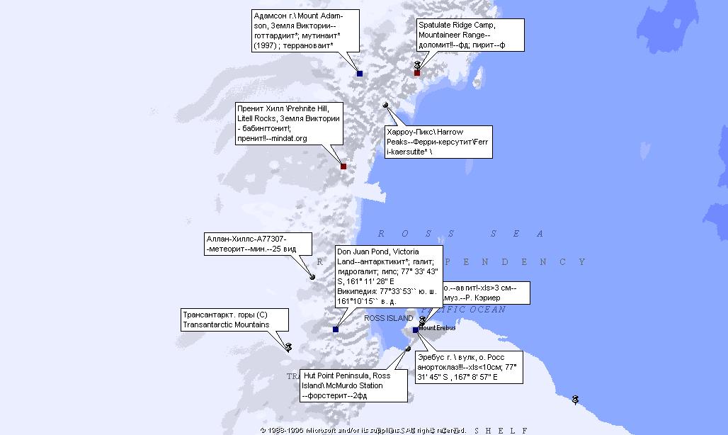Антарктида. Местонахождения минералов. Примеры.. Составил А. Евсеев.