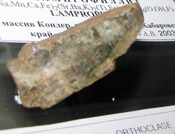 - Лампрофиллит в альбитите. Кондёр, Хабаровский край, Россия. Кристаллы до 6 см. Образец: ФМ (Андреев Г.В., 1961). Фото \ карта: © А. Евсеев.